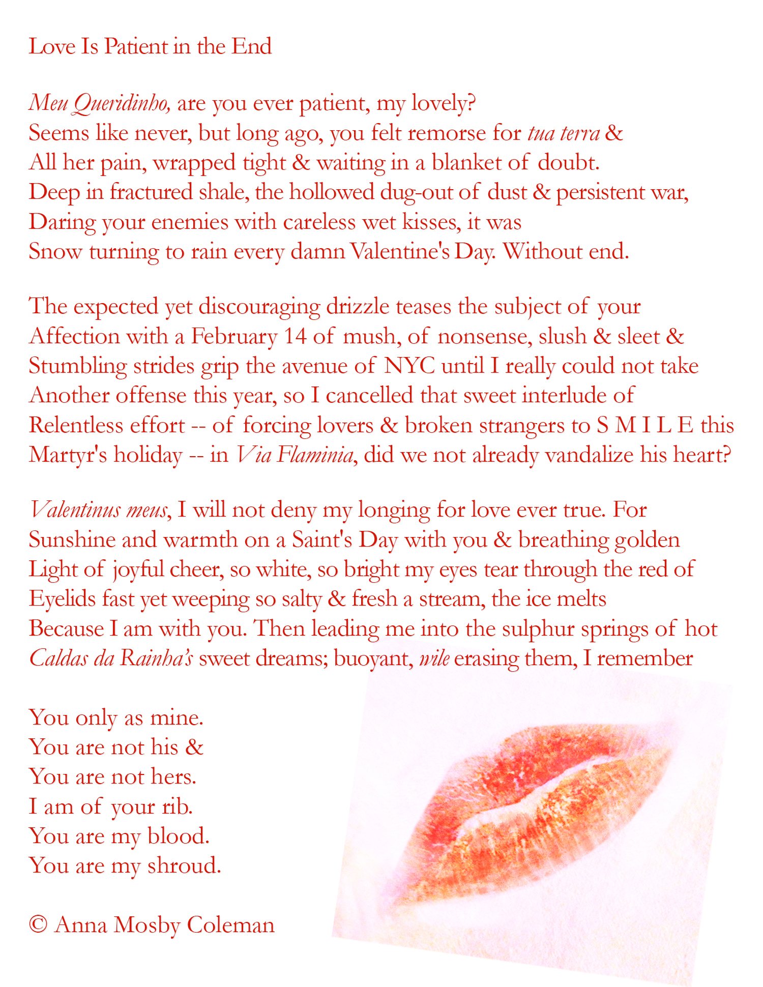 Tagged Anna Mosby Coleman, blood, Caldas da Rainha, Love Is Patient in the End, Martyr, Meu Queridinho, rib, shroud, St. Valentine, Valentine's Day